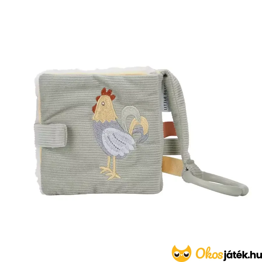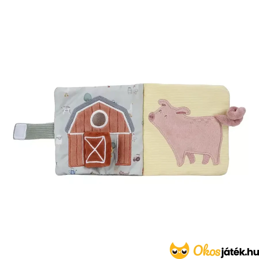 A farmos textil babakönyv egy puha, kedves fejlesztő játék, ami már újszülött kortól segít a babák érzékszervi fejlődésének támogatásában.