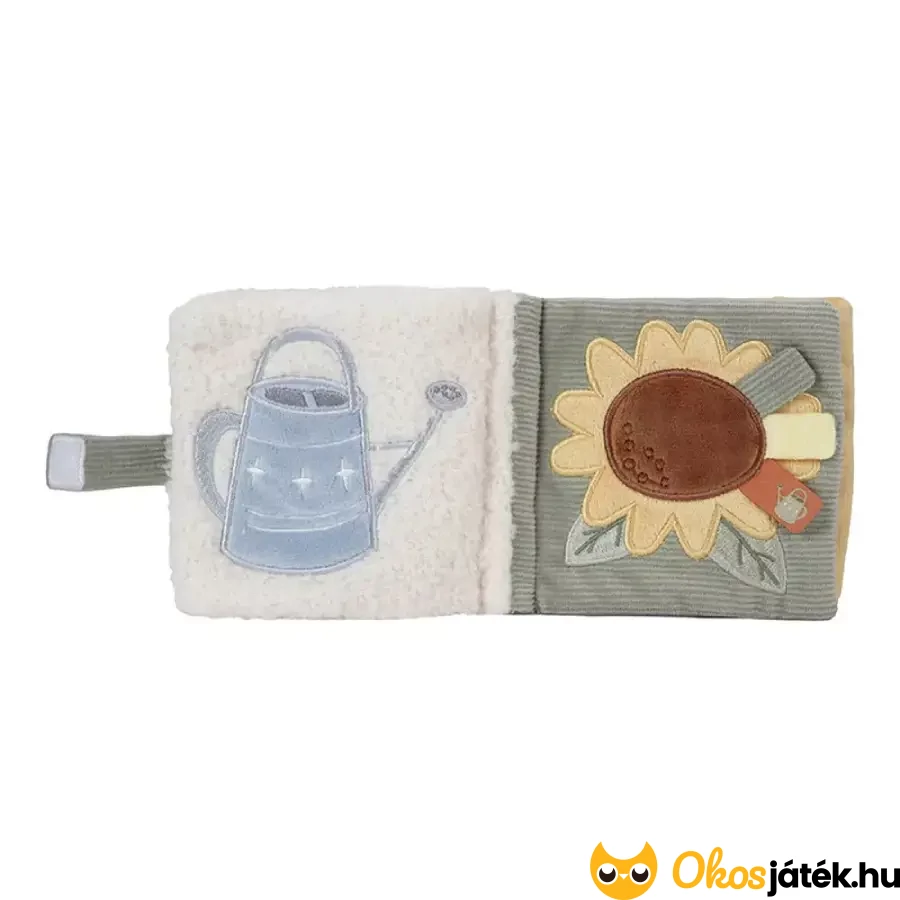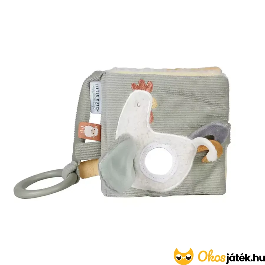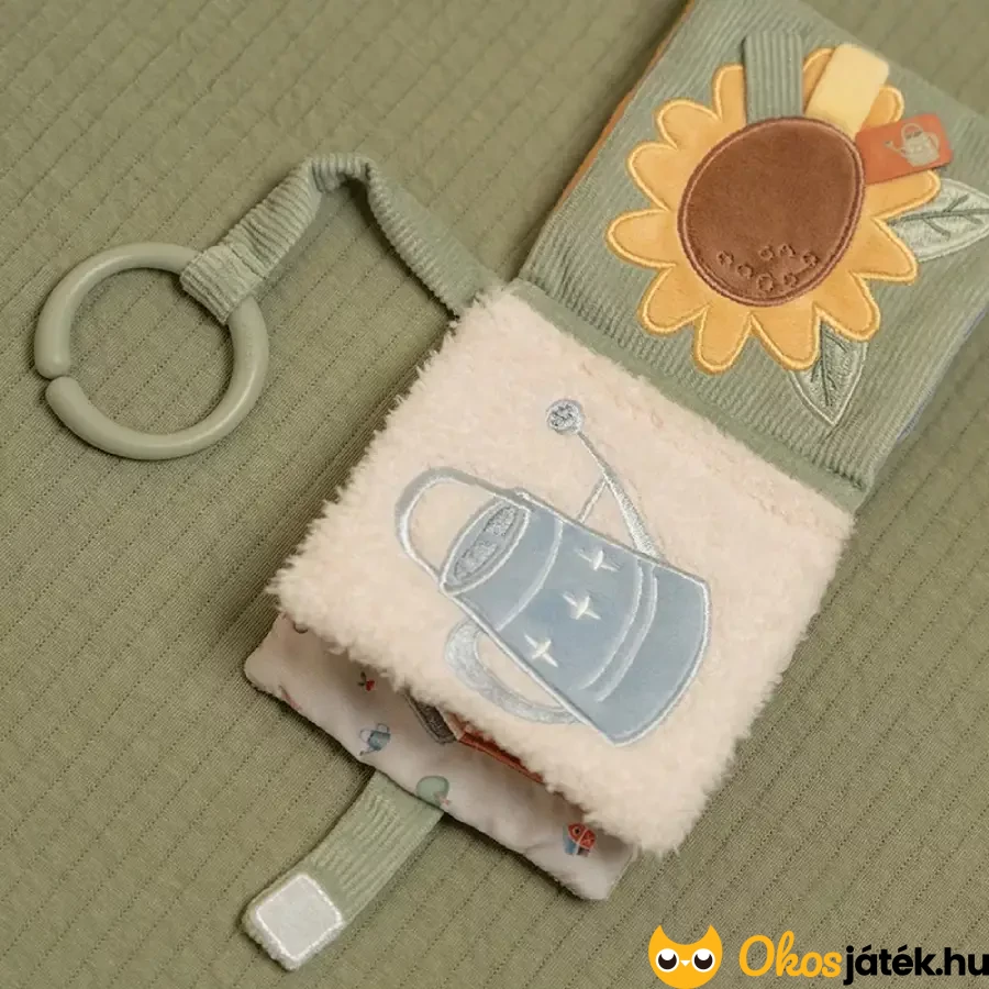 A Little Dutch textil babakönyvet a rögzítő karika segítségével bárhová könnyen felakaszthatjuk.