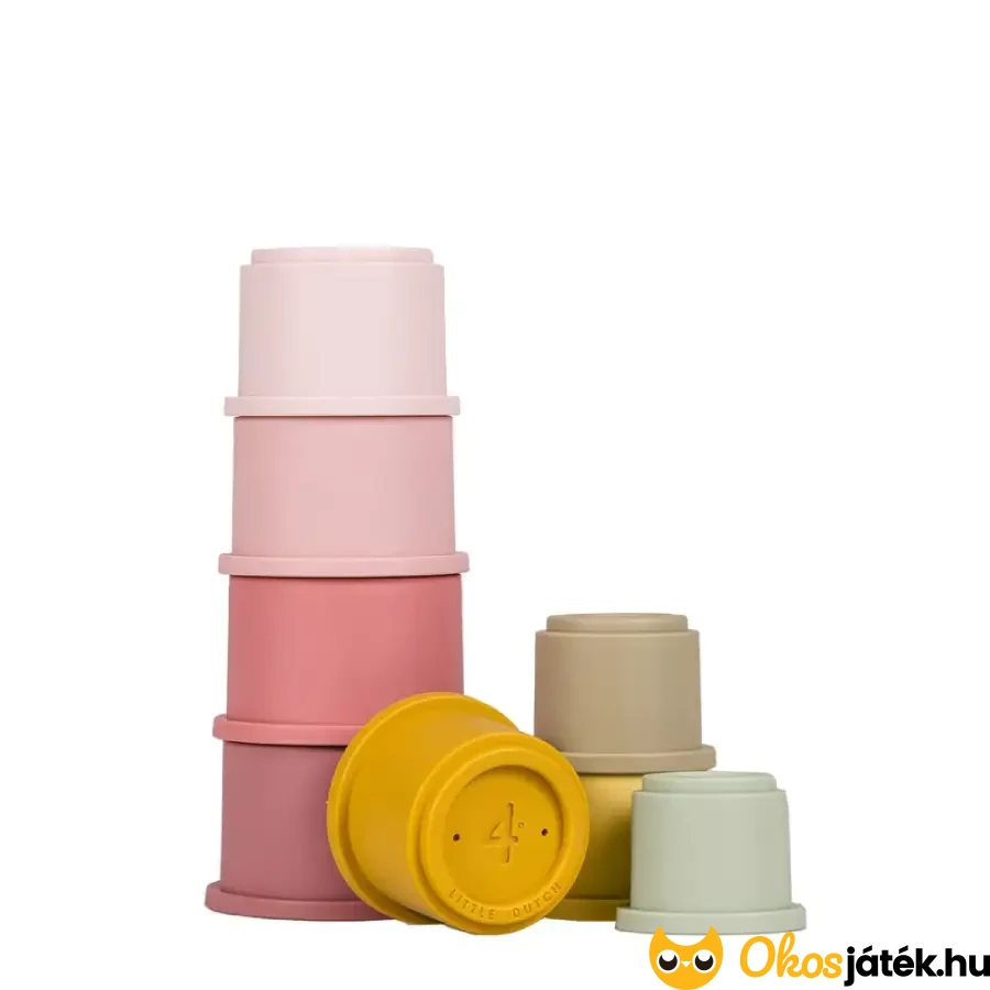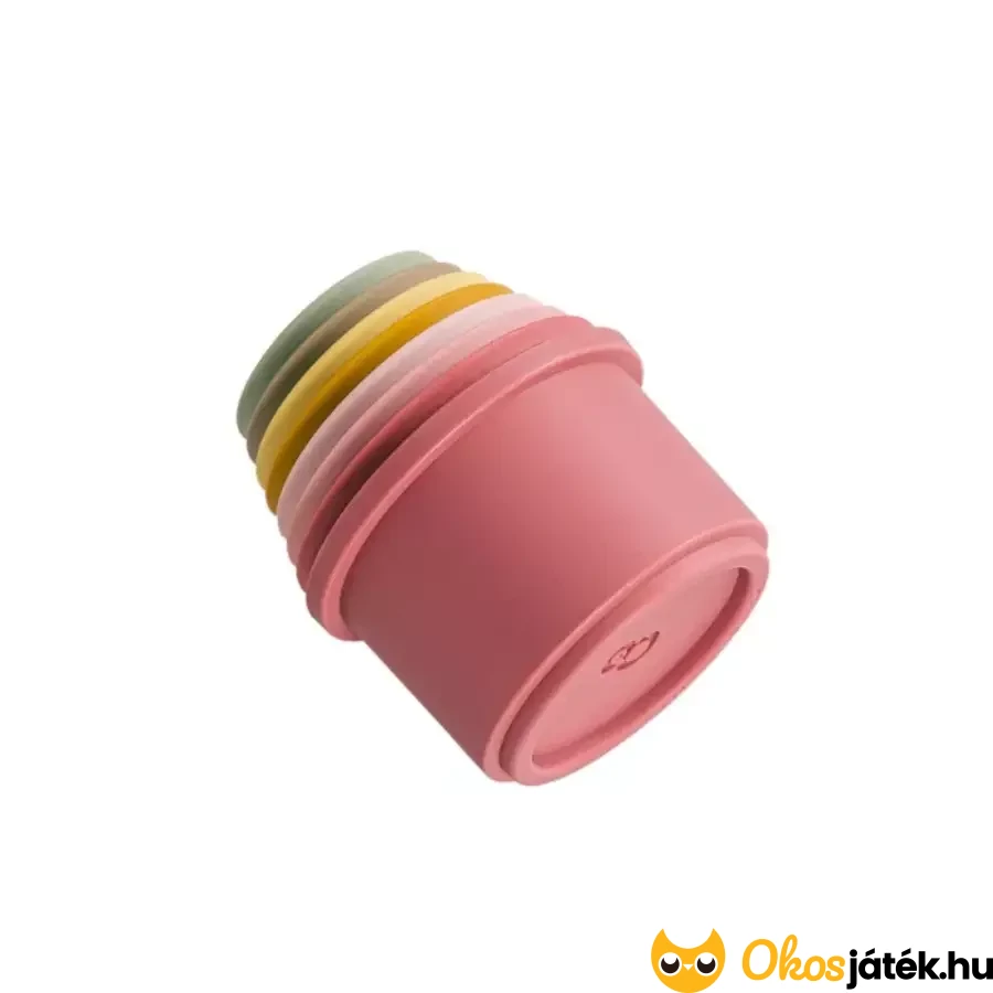 A játék 8 különböző méretű és színű pohárkából áll, melyeket egymásba vagy egymásra pakolhat a gyerkőc.