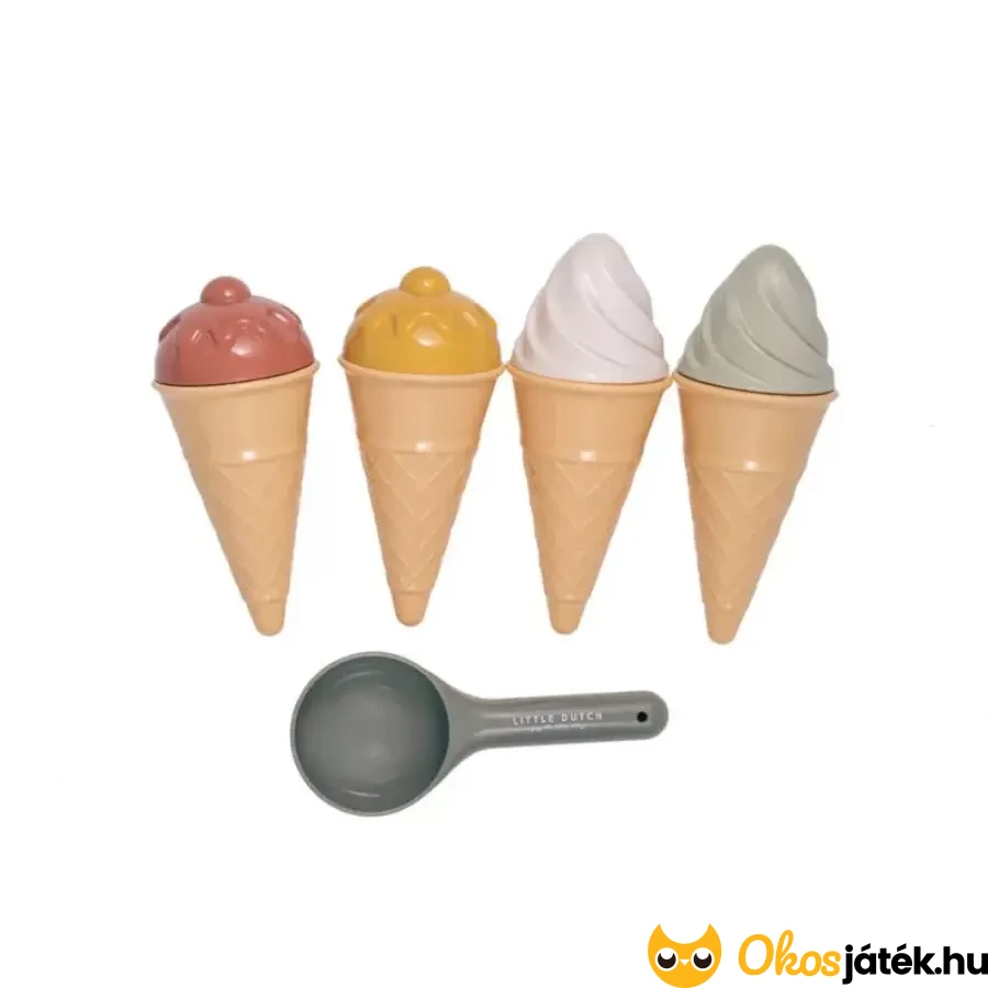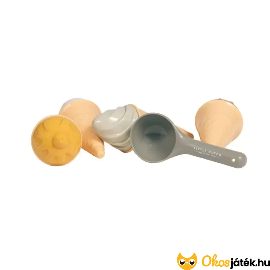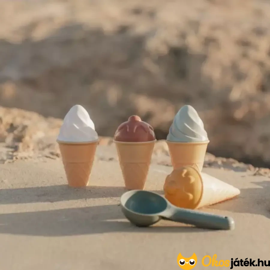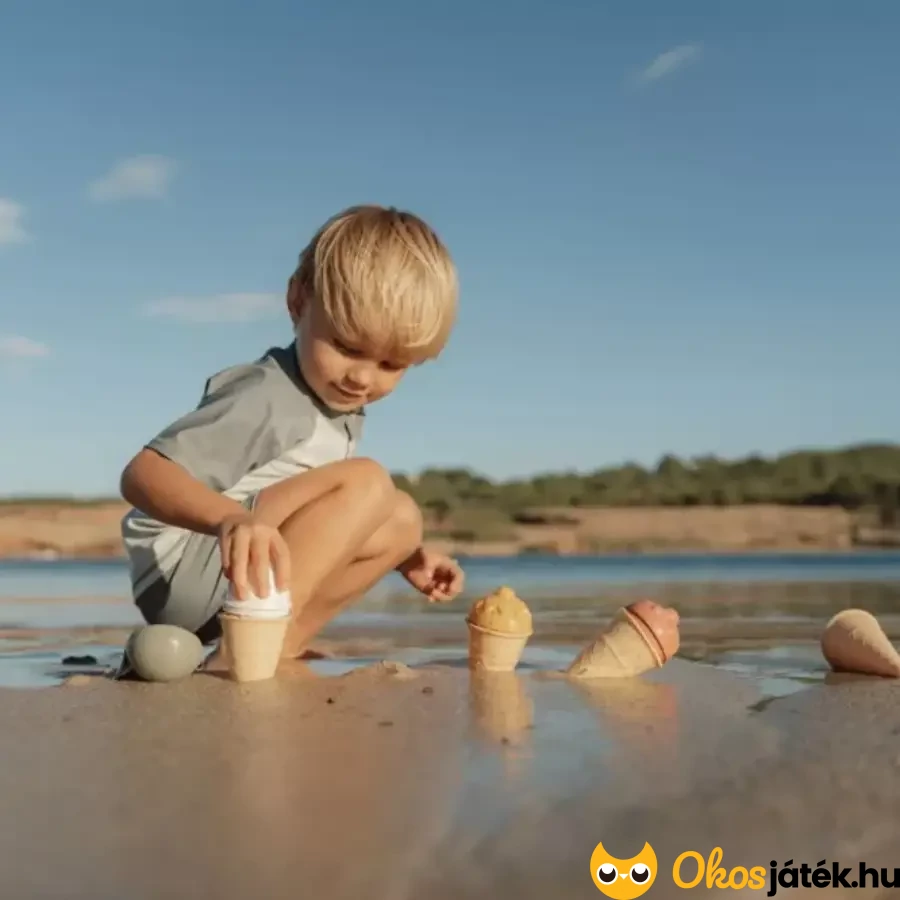 Ez a vidám készlet négy színes tölcsért és négy mókás fagylaltformát (csavart és gombóc fagyiformát) tartalmaz, amelyekkel a gyerekek kreatívan alkothatnak „homokfagyikat”.