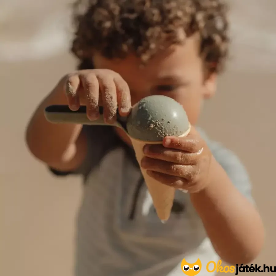 Az adagoló kanál segítségével könnyedén meg lehet tölteni a tölcséreket homokkal – indulhat is a fagylaltozó a homokozóban!