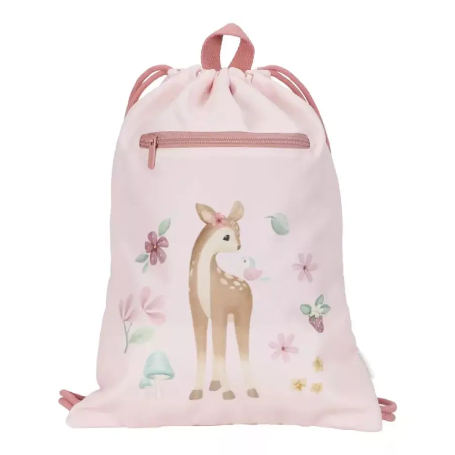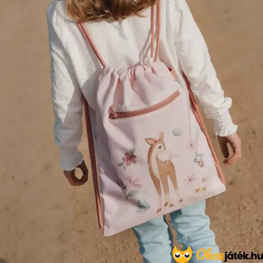 Kellemes színvilágú tornazsák a Little Dutchtól, gyönyörű őzikés témában. A tornazsák praktikus választás lehet óvodások, kisiskolások részére.