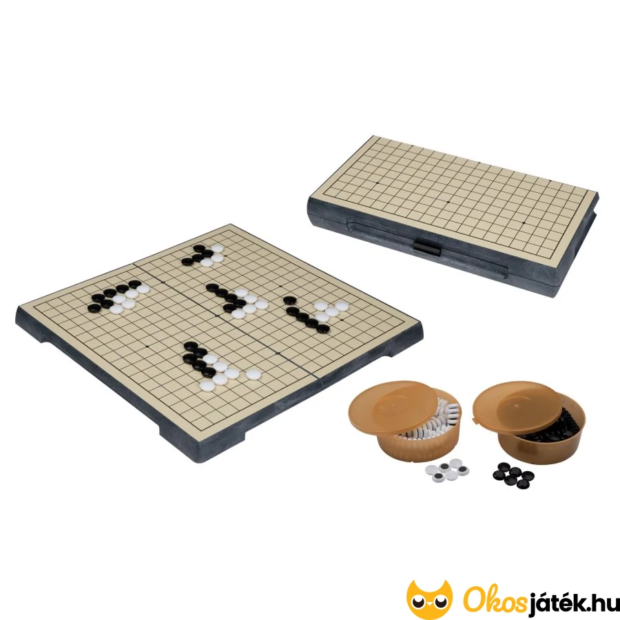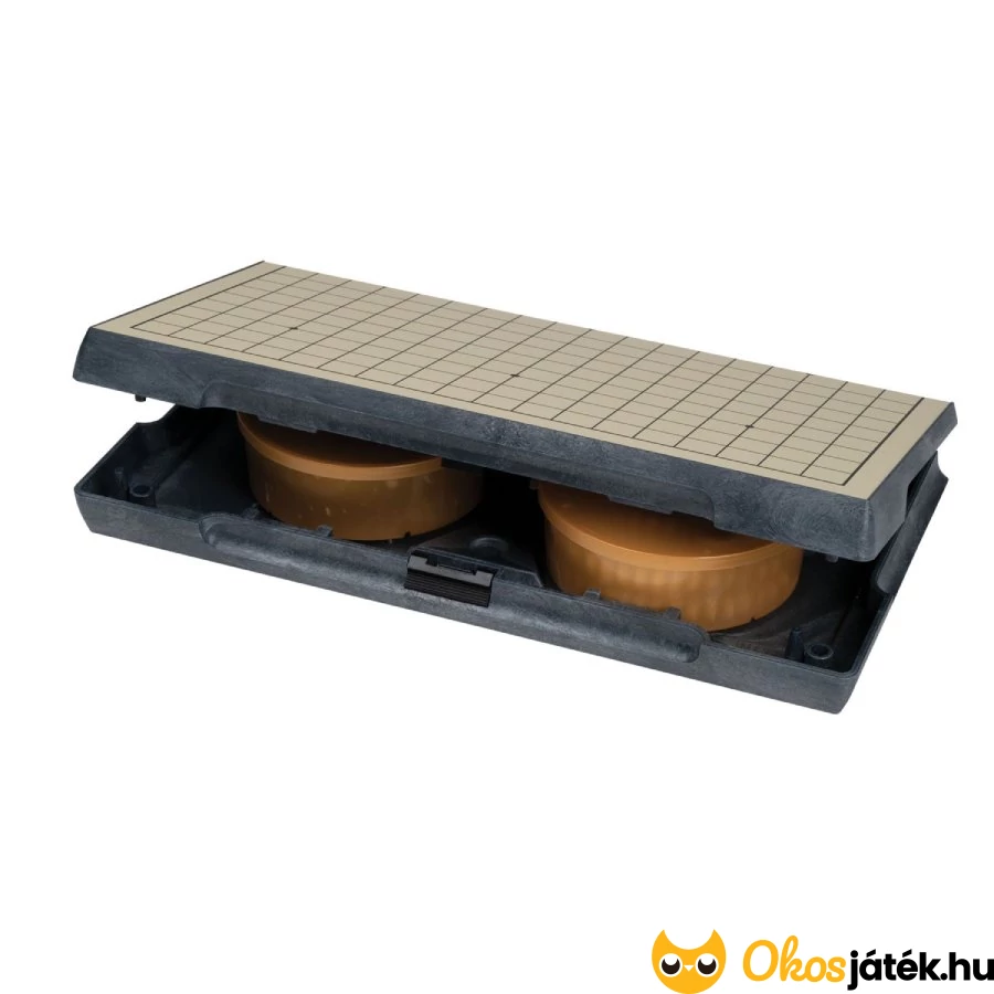 A szett tartalma: go tábla, két tároló a köveknek, 180 fehér kő és 180 fekete kő