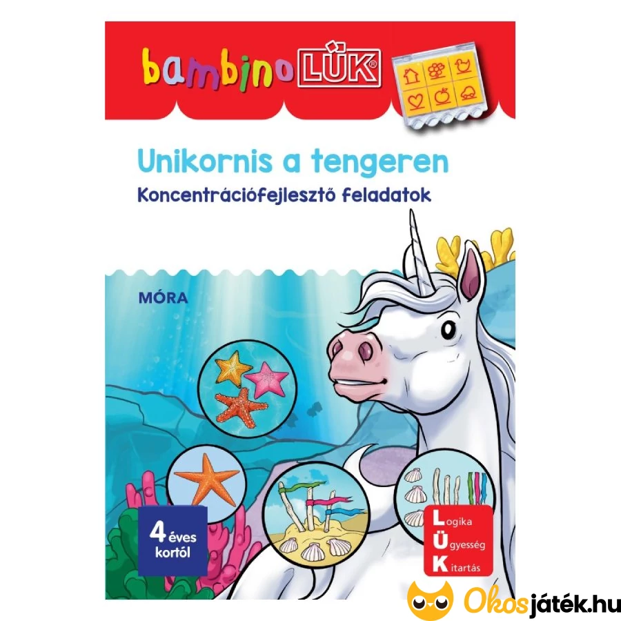 A BambinoLük kiváló segítséget nyújt azoknak a gyerekeknek, akik még nem tudnak írni, számolni, olvasni, mindezt játékos formában. A gyerekek a feladatkönyvvel egy bájos unikornist kísérhetnek el tengeri kalandozásaiban.