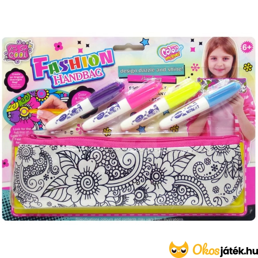 Egy kreatív készlet, mellyel a lányok szabadjára engedhetik a fantáziájukat. Ez a kreatív írószertartó készlet egy színezhető tolltartót és 4 vegyes színű (rózsaszín, sárga, lila, és világos kék) filctollat tartalmaz. A készlettel egyedi, saját kreativitásuk által megálmodott színkombinációkkal díszíthetik ki a lányok, a gyönyörű virágos mintázatot.