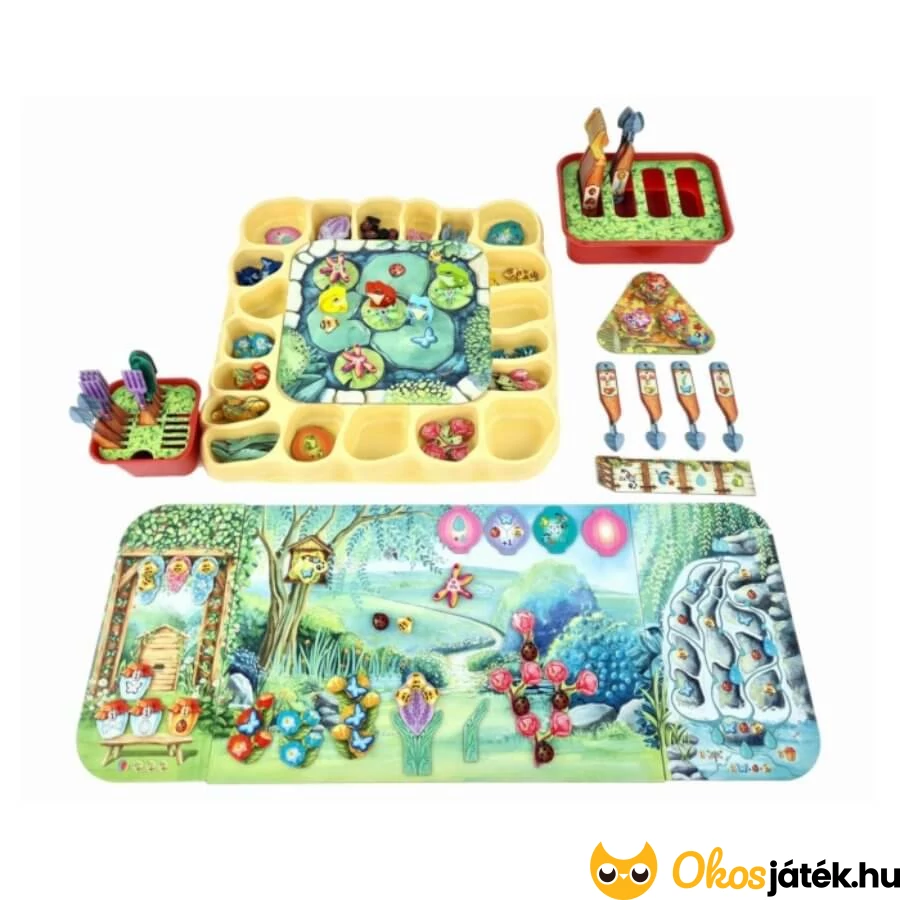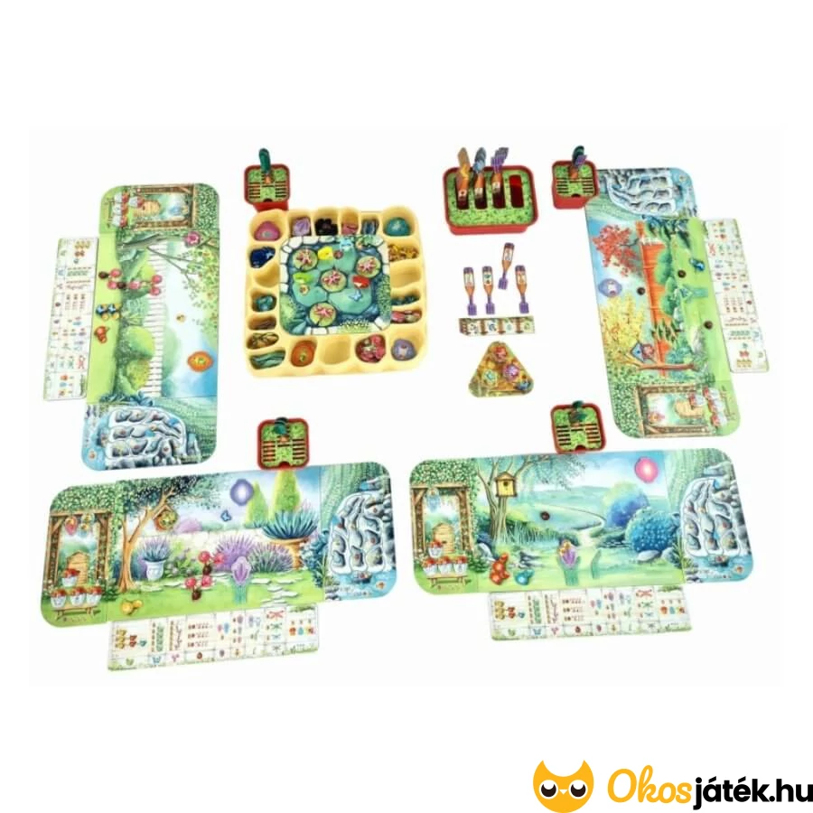 A Pergola társasjáték különlegessége a vizuális élmény: a játék végére egy gyönyörű, szinte képeslapra illő kert születik minden játékos tábláján.