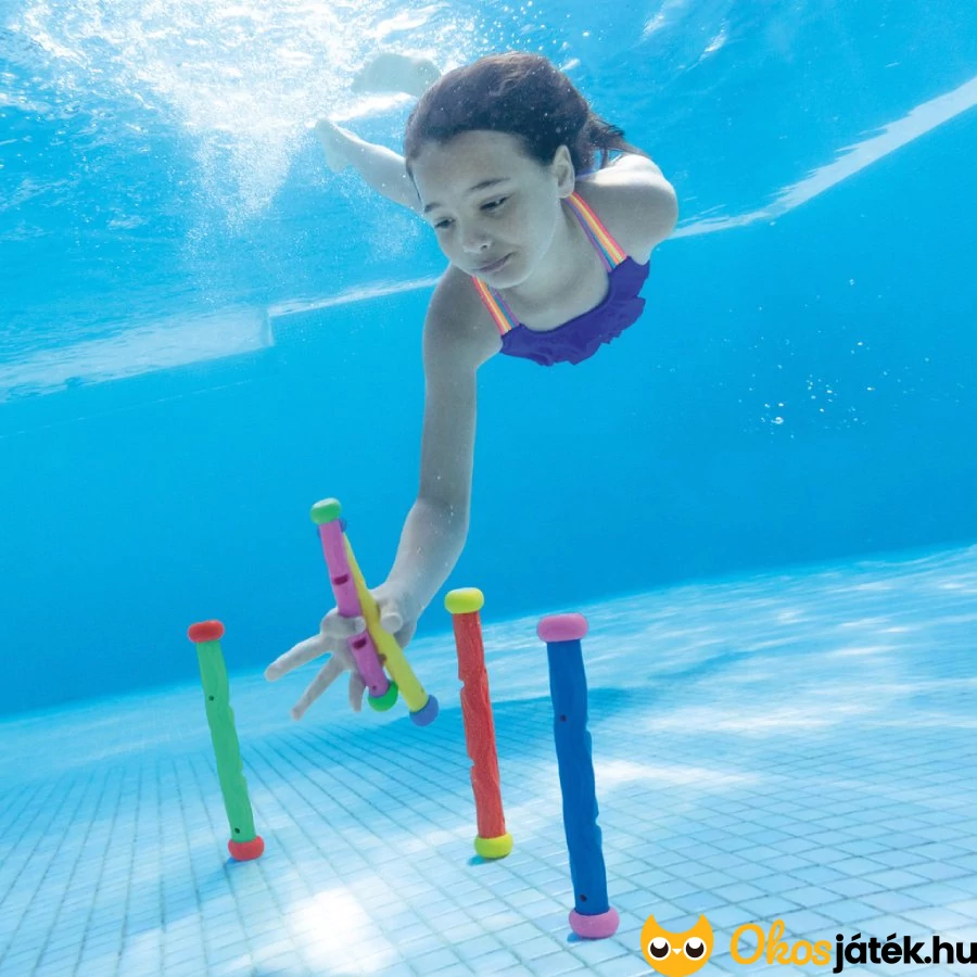 Az Intex víz alatti álló botos játék nemcsak szórakoztató, hanem fejleszti a koncentrációt, a légzéstechnikát és a mozgás-koordinációt is.