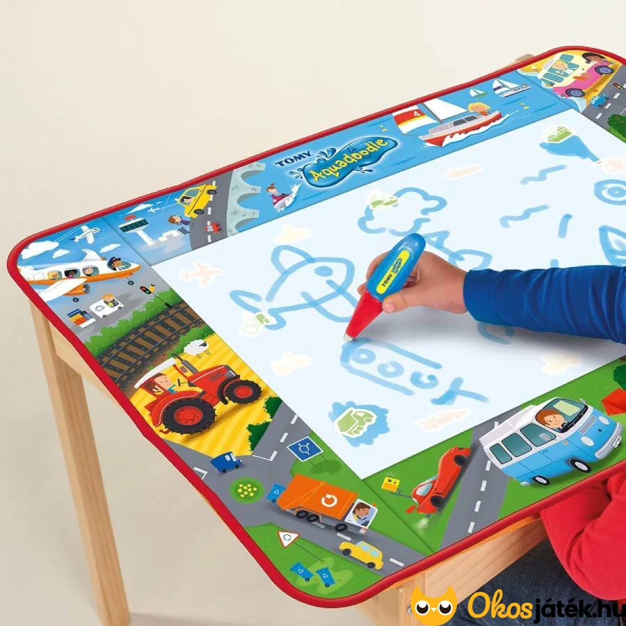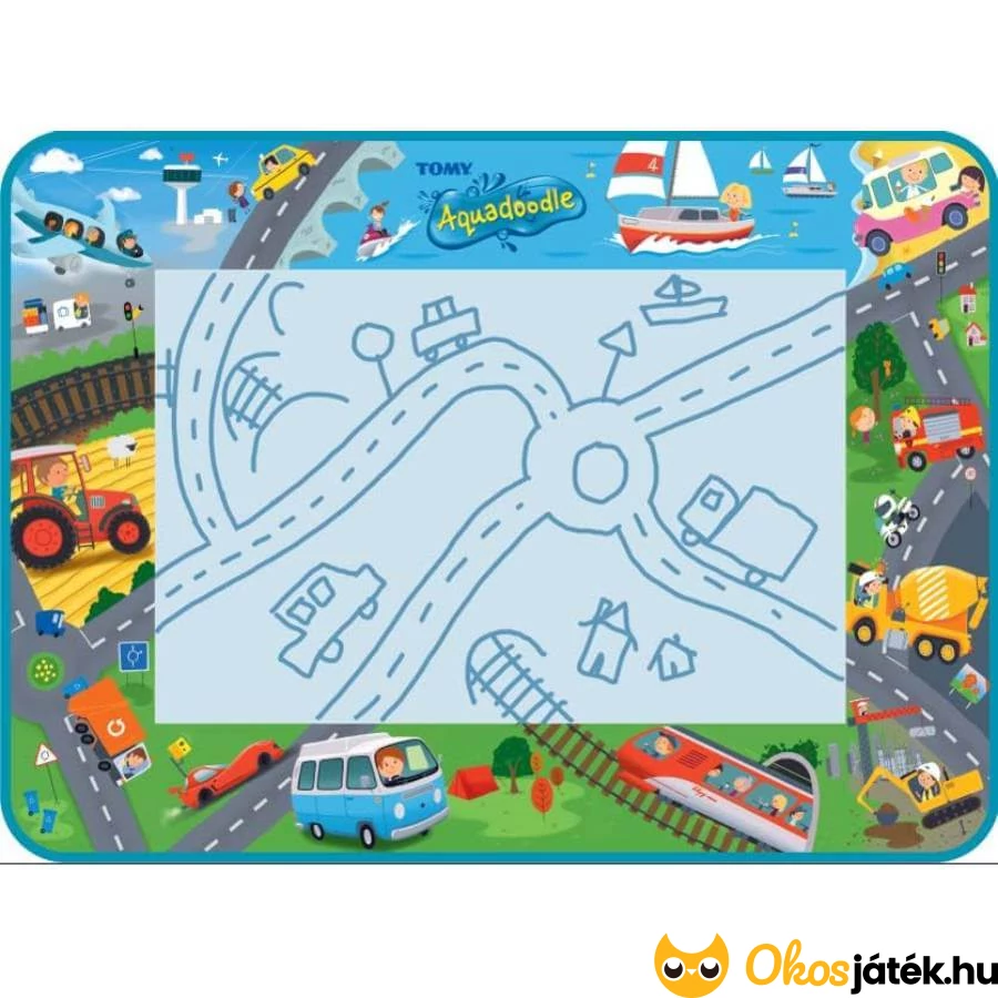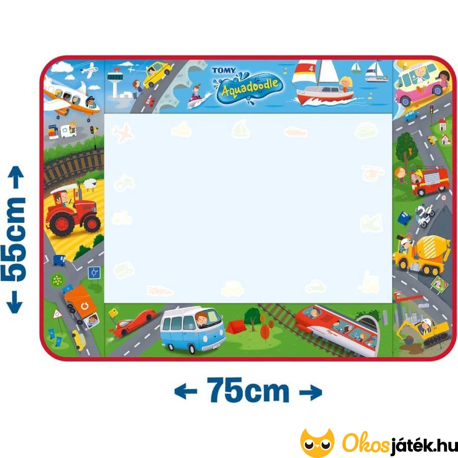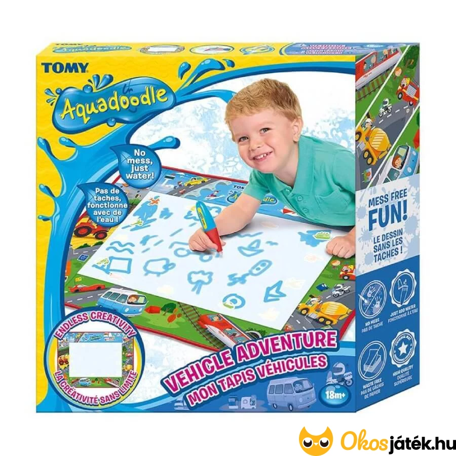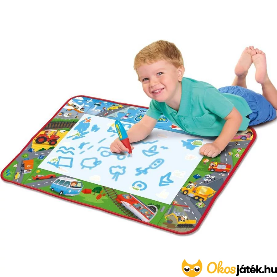 Az alkotáshoz a mellékelt speciális, újratölthető írószert kell használni. A szőnyeg különleges anyagának köszönhető, hogy ahol víz éri, ott elszíneződik. A szőnyegen mindenféle jármű fellelhető, ami a kisfiúkat érdekelheti, például busz, motor, munkagépek, vonat, különféle hajók és természetesen repülők is. A gépjárművek utakon, a vonat síneken közlekedik ezen a szemkápráztató rajzszőnyegen.