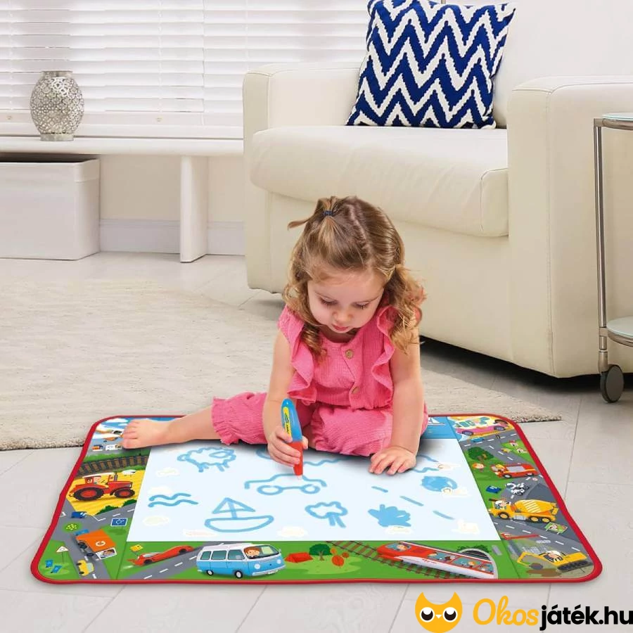 A gyermekek nagyon szeretnek firkálni, rajzolgatni. Ez az autós rajzszőnyeg remek lehetőséget kínál a kis művészeknek ezekhez az alkotói tevékenységekhez. A rajzolás során vizet használnak a gyerekek, így nem koszolnak, maszatolnak össze semmit.