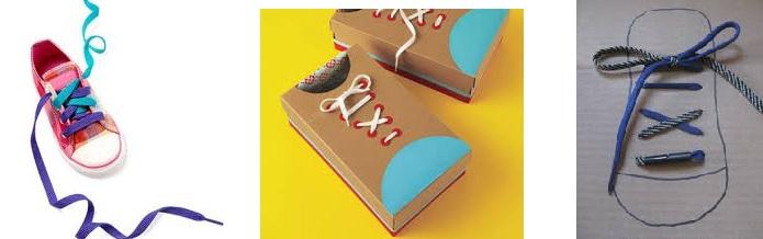 Egy kartonlapra, vagy cipősdobozra rajzolhatunk egy cipőt, és befűzzük cipőfűzővel vagy vastagabb zsinórral / kötéllel, és azon is lehet gyakorolni.
