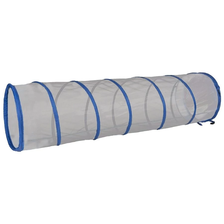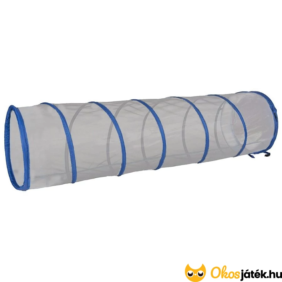 Hálós, átlátszó anyagból készült 180 cm hosszú, bújtatott rugós játszóalagút.