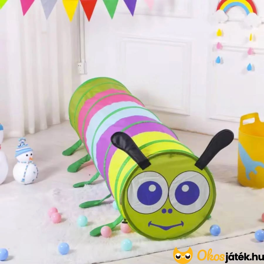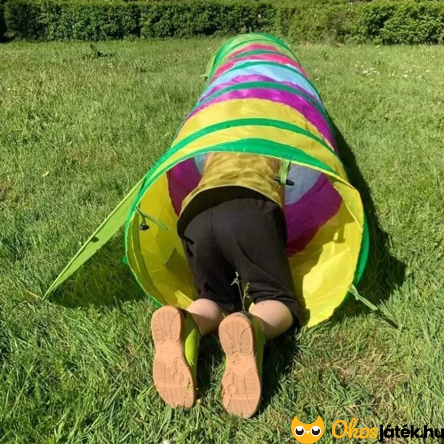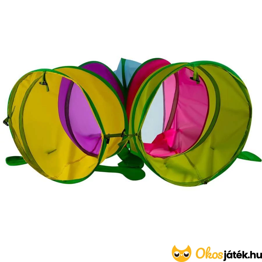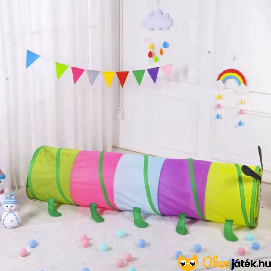 A játszóalagút színei vidámak, változatosak, az anyag nem átlátszó.