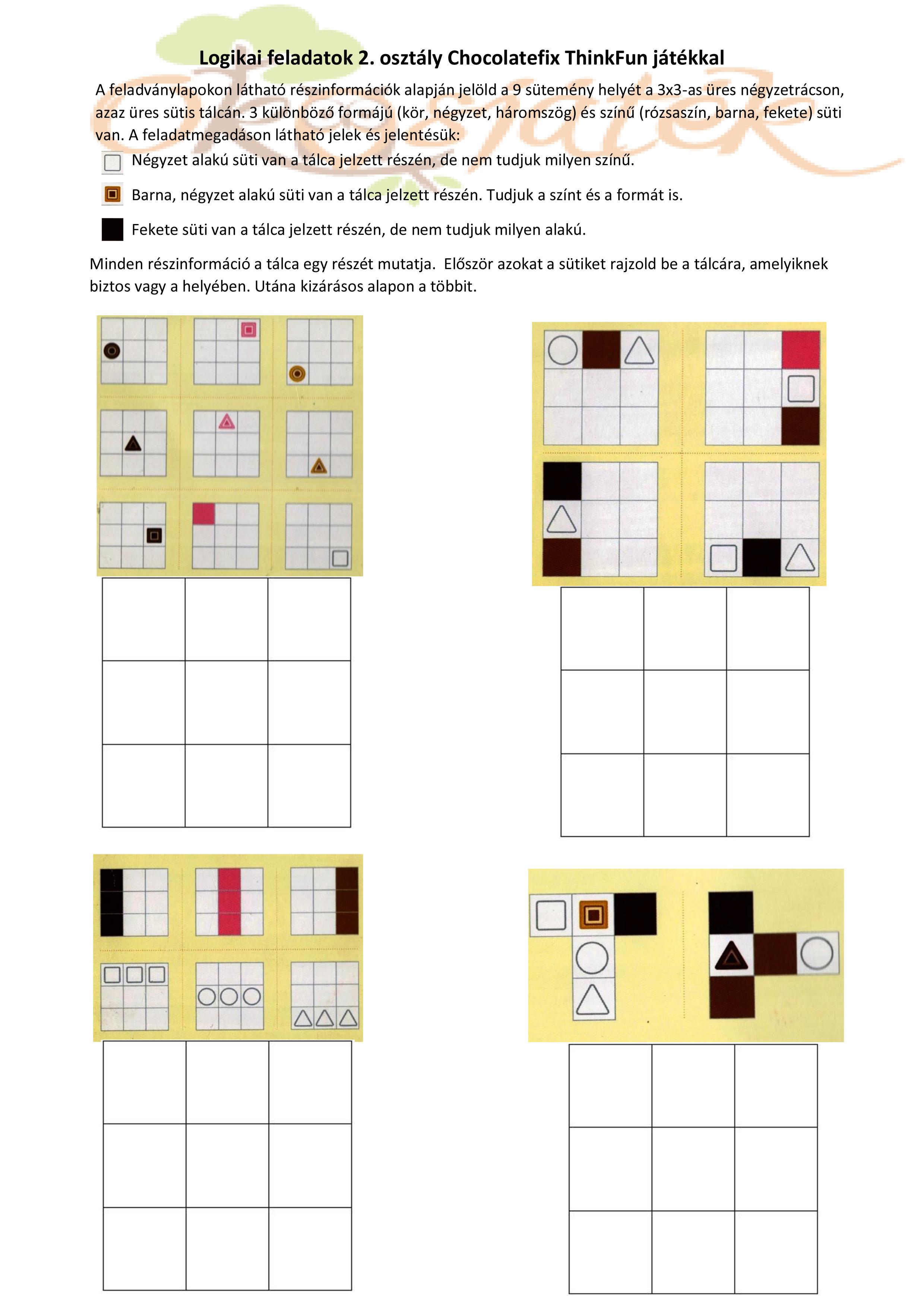 A logikai feladatokat a Chocolate Fix ThinkFun játékkal készítettük.