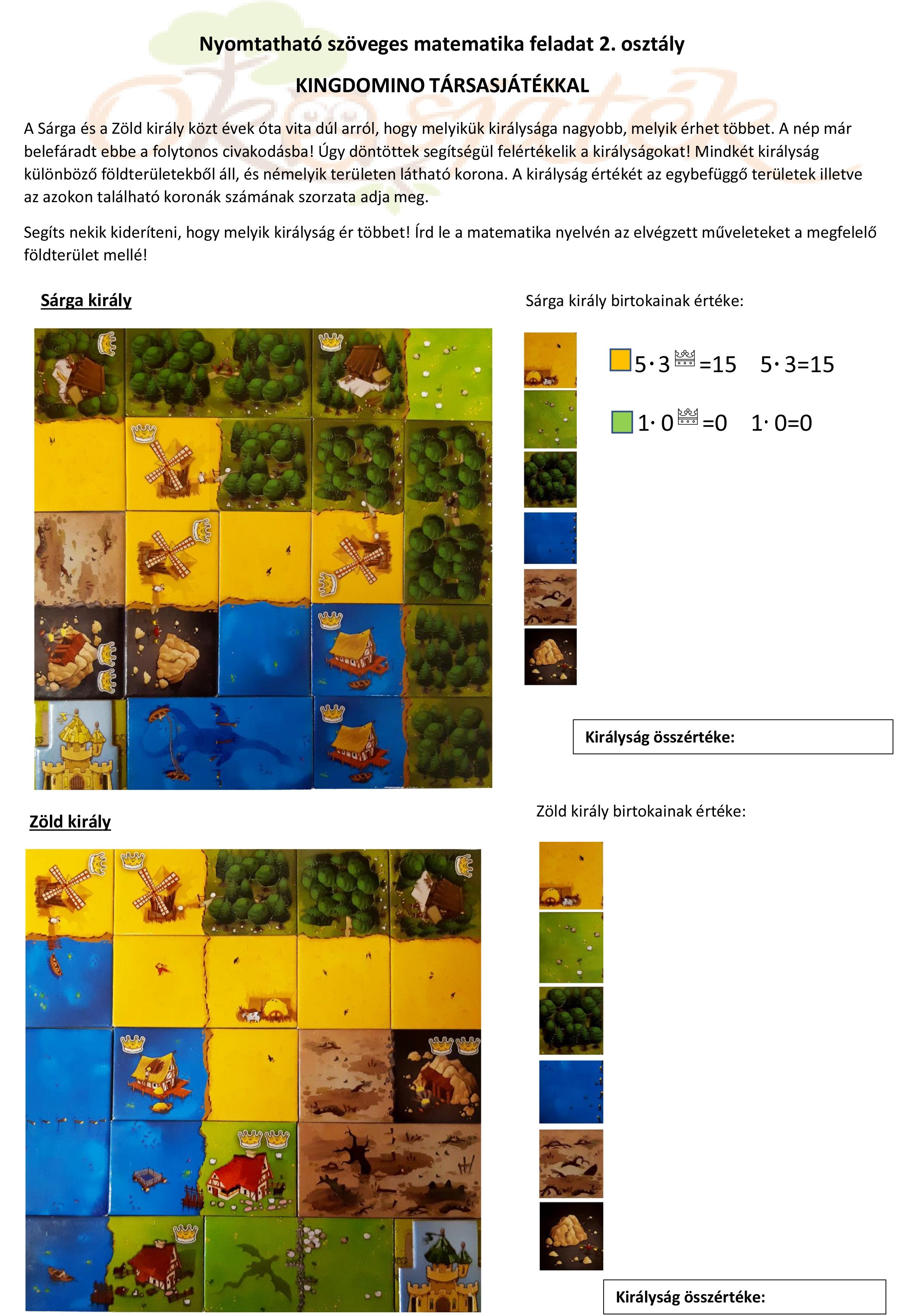 A szöveges matematika feladatot a Kingdomino társasjáték segítségével készítettük .