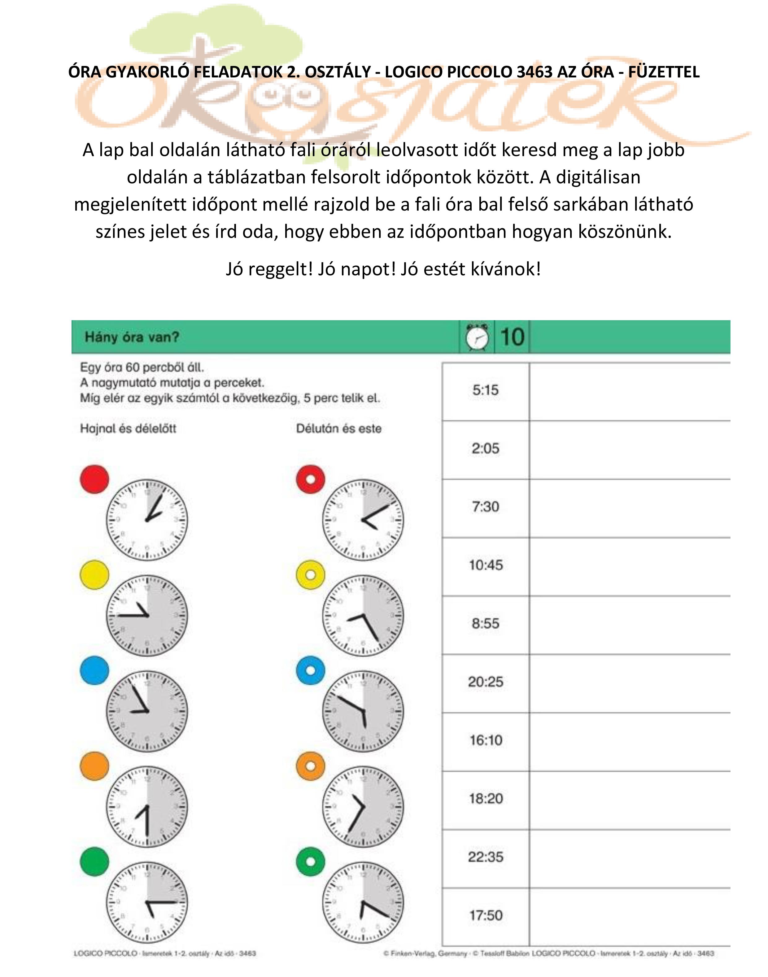 A feladatok a Logico Piccolo 3463 Az óra füzetből vannak.