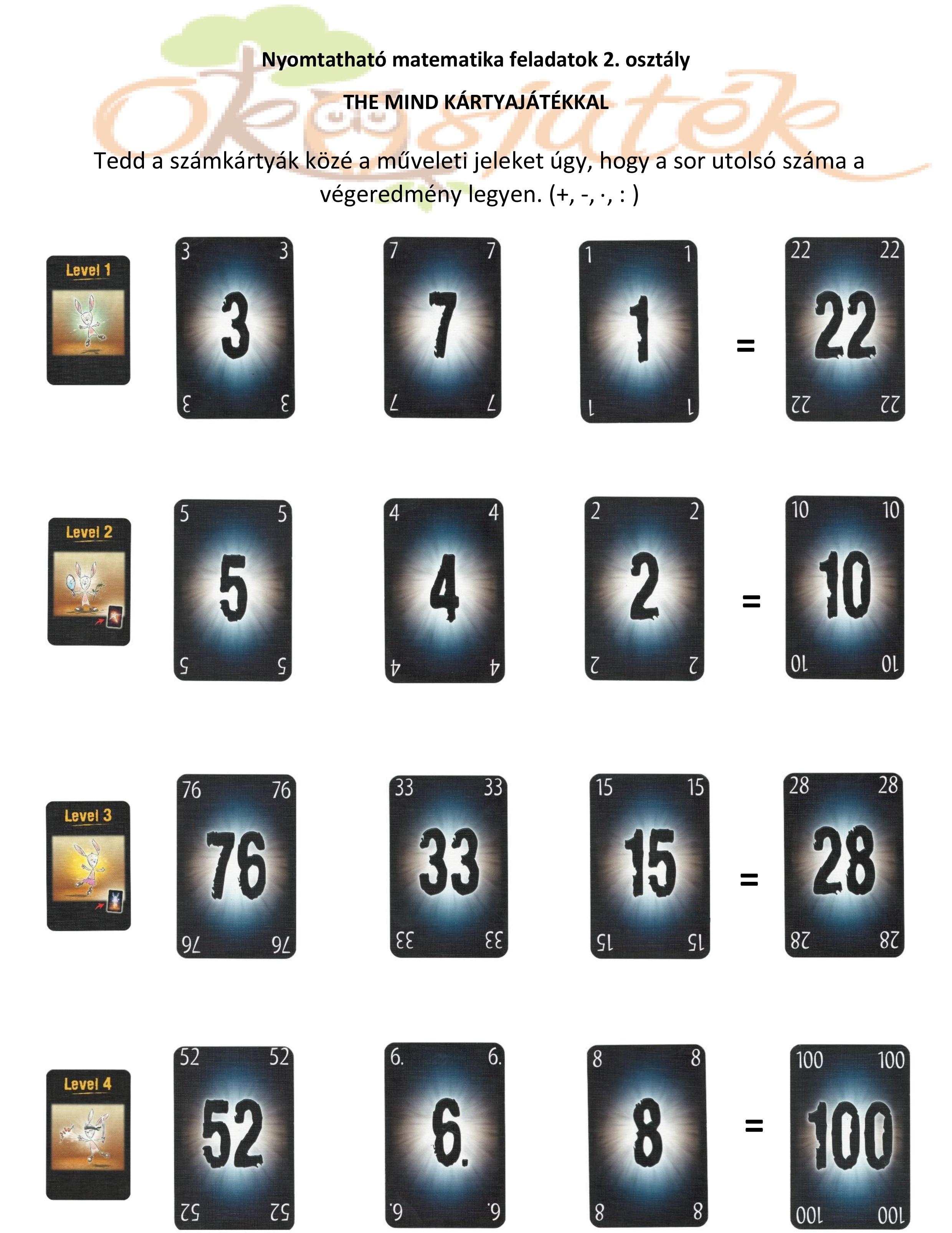 A matematika feladatok a The mind kártyajáték segítségével készültek .
