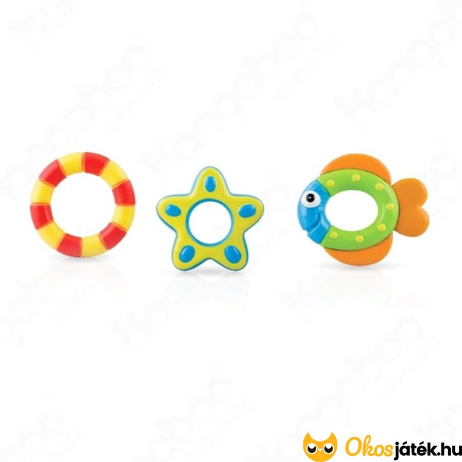 A három színes gyűrűvel való játék ösztönzi az aktív részvételt, fejleszti a kéz–szem koordinációt, valamint segíti az érzékszervek és a fantázia kibontakozását.