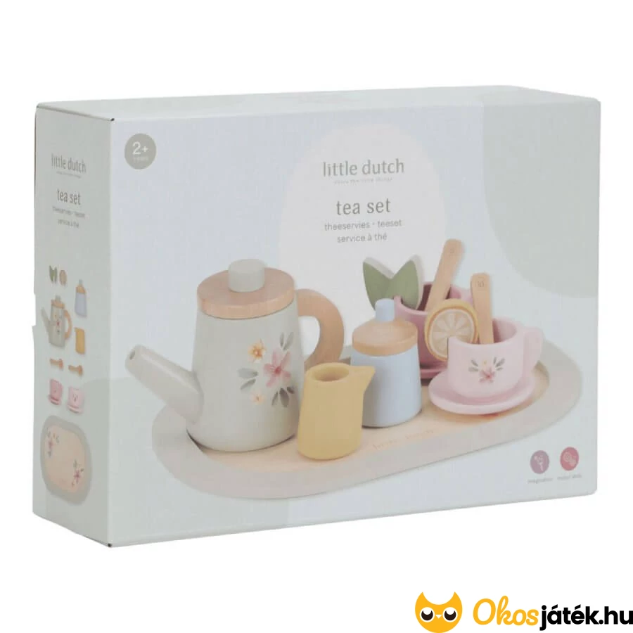 Tündéri fa teáskészlet, mellyel egy remek teadélután főszereplői lehetnek a gyerekek, házigazdaként vagy vendégként. A főzős szerepjátékok sikere töretlen, a gyerekek még mindig nagyon szeretik utánozni a felnőttek napi tevékenységét.