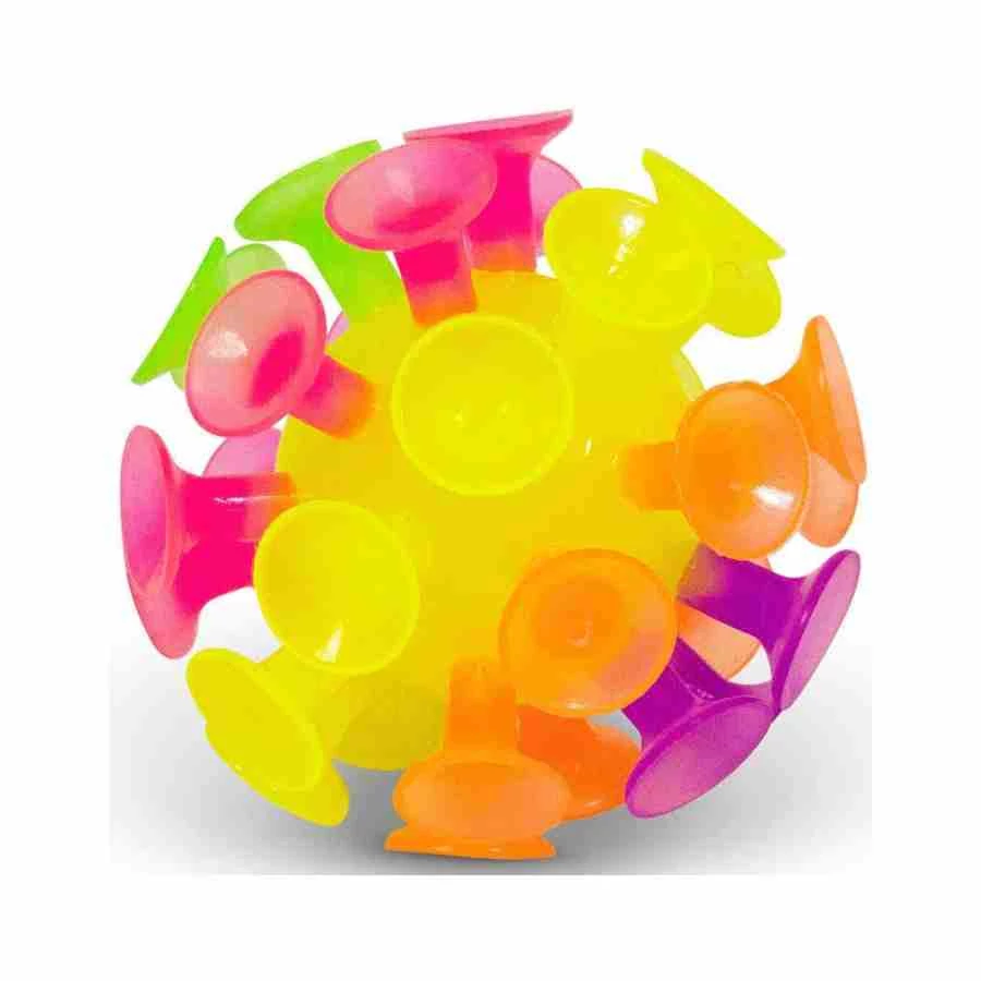 A 32 tappanccsal körberakott labda vidám színeivel, dobálásra ösztönző formájával és a tapadókorongjaival elvarázsolja az örökmozgó gyermekeket.