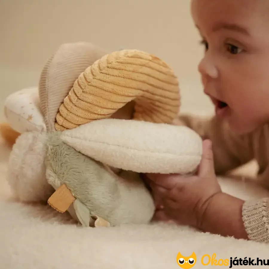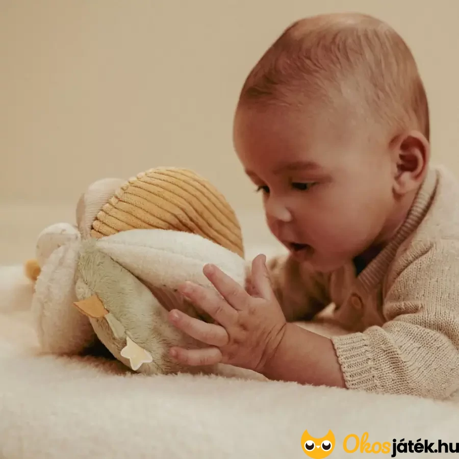 A Little Dutch készségfejlesztő plüss labda már az első hónapoktól kezdve hozzájárul a kisbabák érzékszervi és motoros fejlődéséhez.