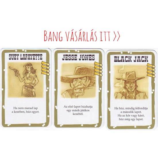 A BANG társasjáték egy igazi western hangulatú játék, amelyben egy csapat ravasz bandita és egy elszánt seriff küzd egy mással. A seriffet inkognitóban dolgozó seriffhelyettesek segítik, de feltűnik a színen egy renegát is, aki saját céljai eléréséhez ki akarja használni a harcoló feleket!