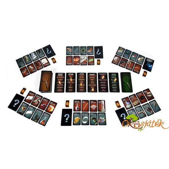 A játékostársuk különböző átlátszó, ábrás lapokat használhat, hogy rávezesse a megoldásra.