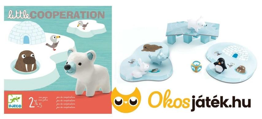 A Little Cooperation egy kooperatív együttműködésen alapuló társasjáték a legkisebbeknek. A kis játékosoknak egy a céljuk: átjuttatni egyik kis szigetről a másikra az állatkákat a kockadobások szimbólumainak megfelelően.