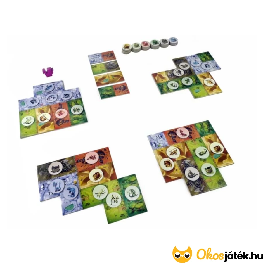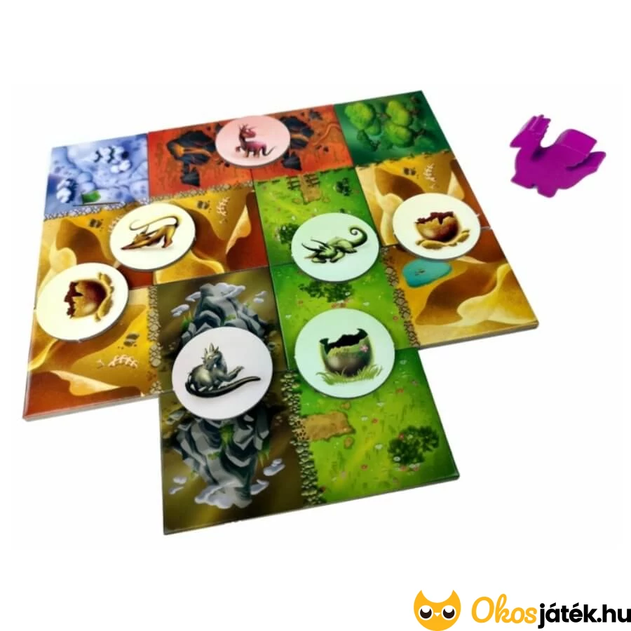 A játékban domino lapkákat, sárkánytojás korongokat és egy anya sárkányt találunk a magyar játékszabály mellett.