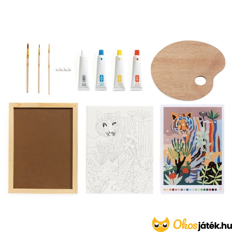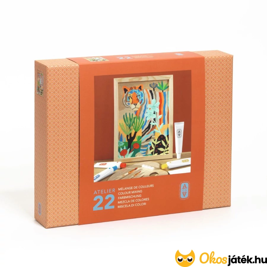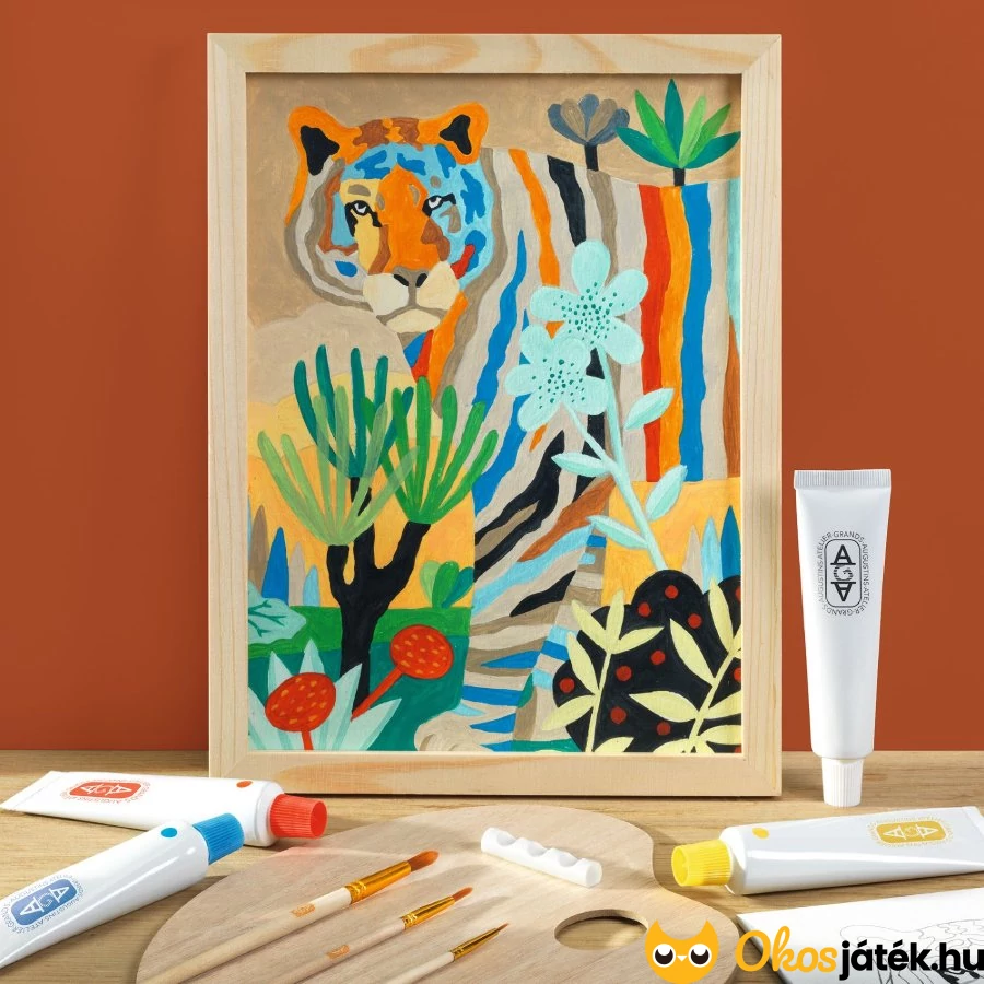 Gyönyörűszép tigrises festő készlet a Djeco legújabb márkájától, az AGA-tól. A szett a színkeverés világába nyújt bevezetést kimondottan nagyobbaknak, felnőtteknek. A gondosan összeállított kreatív csomag lehetőséget ad, hogy elmélyüljünk a színek világában, és megismerkedjünk a festés alapjaival.