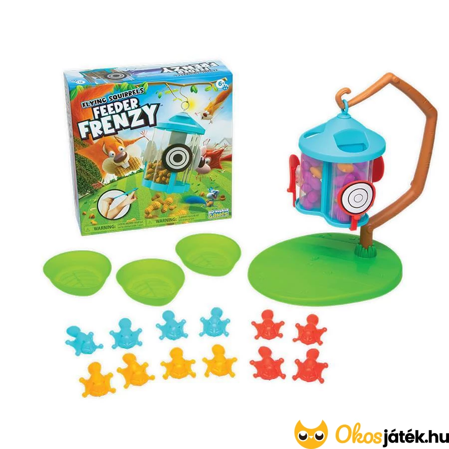 Könnyed, vicces társasjáték gyerekeknek, ahol a mókus csúzlikkal kell eltalálni az etetőt, hogy a termések kiessenek.  A cél a legtöbb mogyoró gyűjtése.