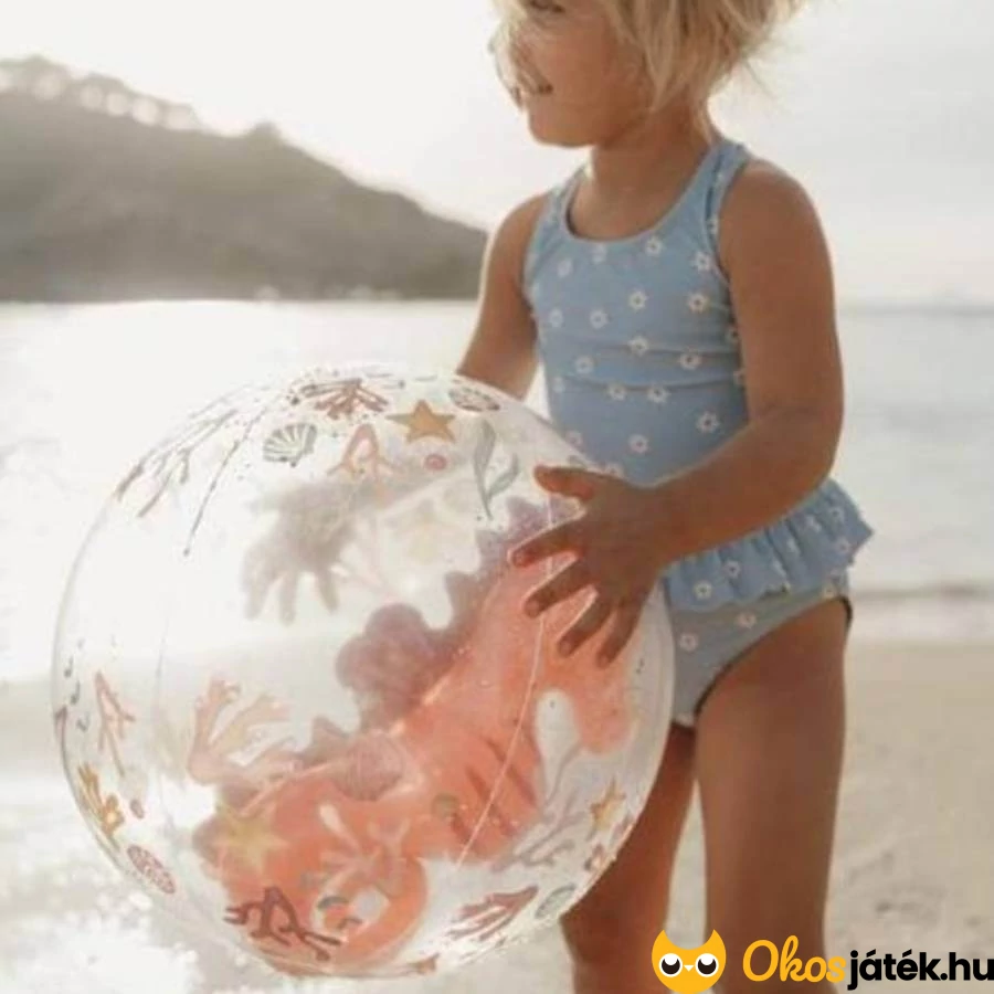Ez a strandlabda nemcsak szórakoztató, hanem fejlesztő is: játék közben a kicsik megismerkedhetnek a tengeri élővilággal, miközben fejlesztik koordinációs készségeiket.