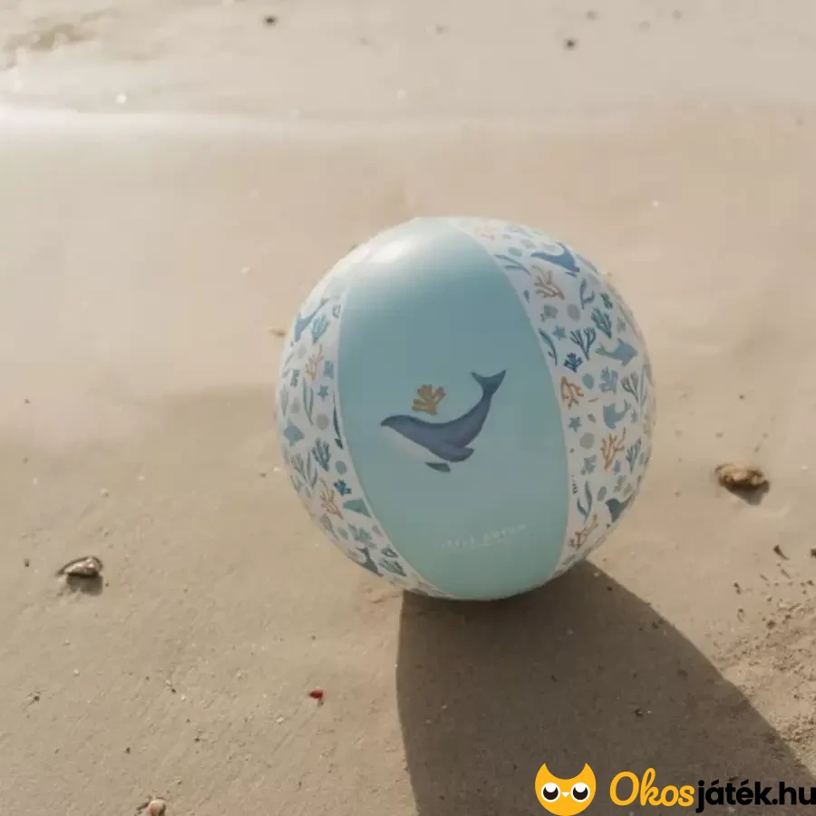 Felfújható medencébe való játéklabda, amely tökéletes választás a nyári napokra. A strandlabda világoskék alapszínű, bájos, tengeri témájú mintákkal díszített, köztük egy nagy bálnával.