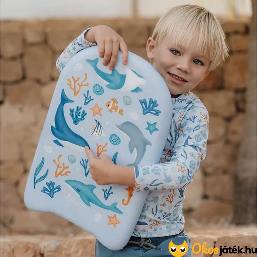 Könnyű, de nagyon masszív habszivacsból készült, tengeri motívumokkal díszített, gyerekek méretéhez igazított úszódeszka.