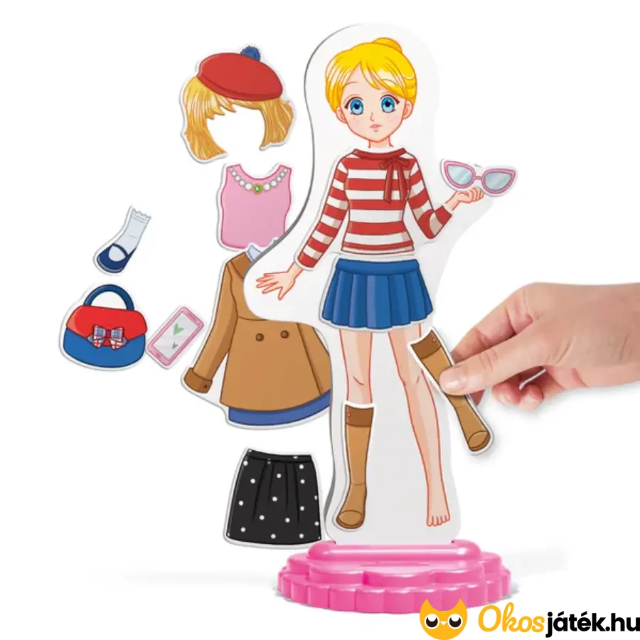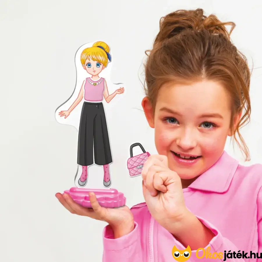 Mágneses öltöztethető lányfigura az olasz Quercetti márkától már 5 éves kortól kimondottan lányoknak. A ruhadarabok és kiegészítők könnyen cserélgethetők a babán a mágnesességnek köszönhetően.