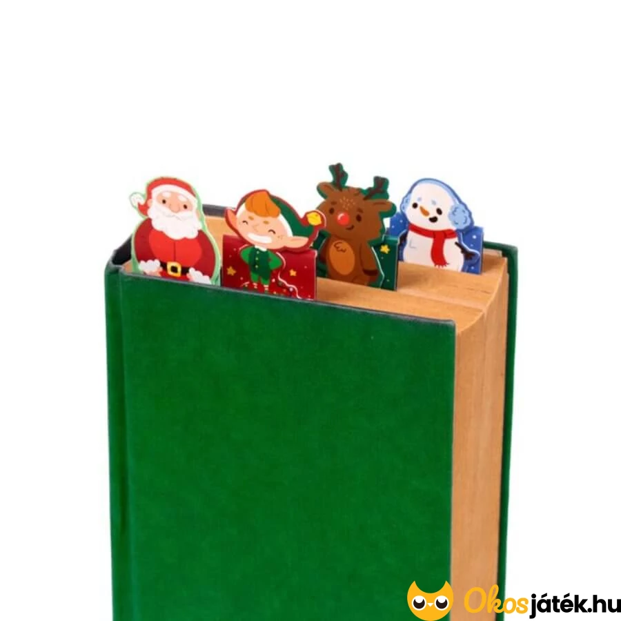 A szett 4 darab karácsonyi mintás (télapó, hóember, manó, rénszarvas) mágneses könyvjelzőt tartalmaz, melyek vidám, ünnepi motívumaikkal feldobják az olvasás élményét.
