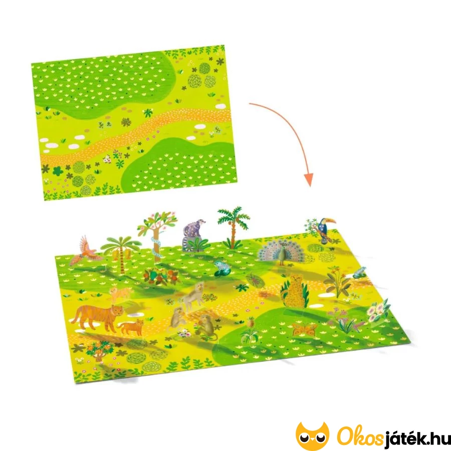 A különleges Djeco játék egyedi módon ötvözi a matricázás szórakoztató élményét és a mesélés varázsát, és mindezt 3D dimenzióban!