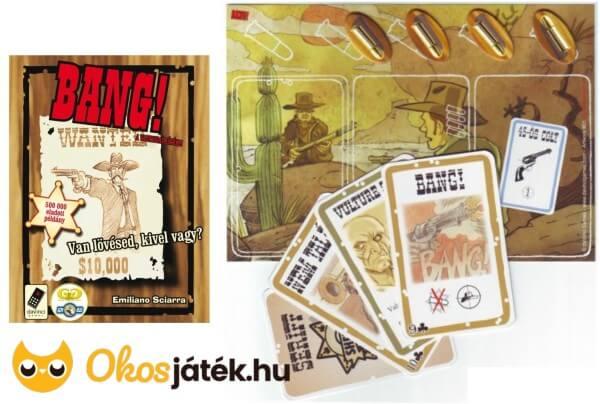 A BANG társasjáték egy igazi western hangulatú játék, amelyben egy csapat ravasz bandita és egy elszánt seriff küzd egy mással. A seriffet inkognitóban dolgozó seriffhelyettesek segítik, de feltűnik a színen egy renegát is, aki saját céljai eléréséhez ki akarja használni a harcoló feleket!