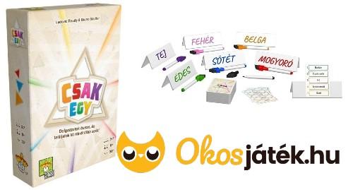 A Csak Egy kooperatív társasjáték, mely 2019-ben elnyerte Az Év Társasjátéka díjat. Minden körben van egy kezdőjátékos. Ő választ az asztalon lent lévő kártyák közül egyet, majd úgy, hogy nem nézi meg a kártyát választ egy szót. A többiek feladata, hogy a kezdőjátékosnak egyetlen szóval valamilyen módon körülírják a választott szót. A játékostársak által írt szavakból kell kitalálnia a kezdőjátékosnak a szót, amit választott. 8 éves kortól játszható remek játék.