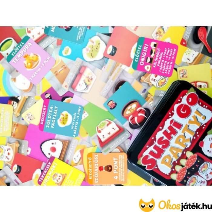 A Sushi Go Party társasjáték (YO) egy mesterien összeállított menük és ínycsiklandó fogások party játéka.Egy mennyei sushi lakomán vesztek részt, ahol először is össze kell állítanotok az étlapot a széles, ízletesebbnél ízletesebb választékból. Ezután 3 forduló alatt a lehető legtöbb pontot kell összegyűjtenetek a legjobb lapkombinációk elvitelével.