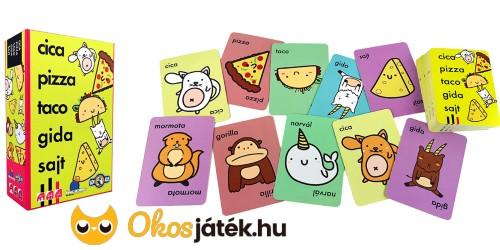 Már a kártyajáték neve is mosolyt csalhat az arcokra, hát még ha leülünk játszani is vele, akkor szem nem marad szárazon. Vicces, pörgős, gyorsasági játék, amelynek már a folytatása is megjelent, mégnyakatekertebb szavakkal, mely a Süti sapi taco pizza ajcsi nevet kapta