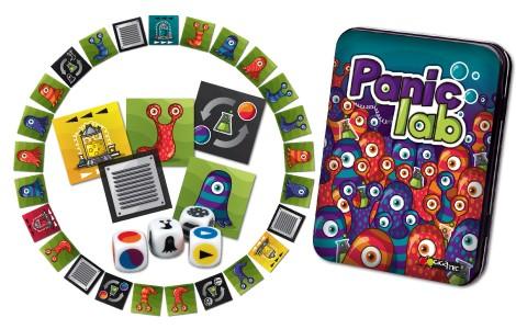 Panic Lab a gyorsaság, megfigyelés és memória játéka! Dobjatok a dobókockákkal, melyek megmutatják, hogy milyen színű, mintájú és formájú amőbát kell keresni. A keresés kiinduló helyzete is meghatározott, nem mindegy, hogy hol keresed! Az amőbák keresését közben szellőzőnyílások nehezítik, ahol szöknek! Sőt, mutálódnak is, tehát ez a játék nemcsak a megfigyelésen és gyorsaságon múlik, hanem a memórián is! Már rég nem azt kell keresni, ha közben átváltozott az amőba, és mivé is változott? Hol is tűnik fel? Egyszerre sok mindenre kell figyelned, nem lazíthatsz! De nagyon jó szórakozás!