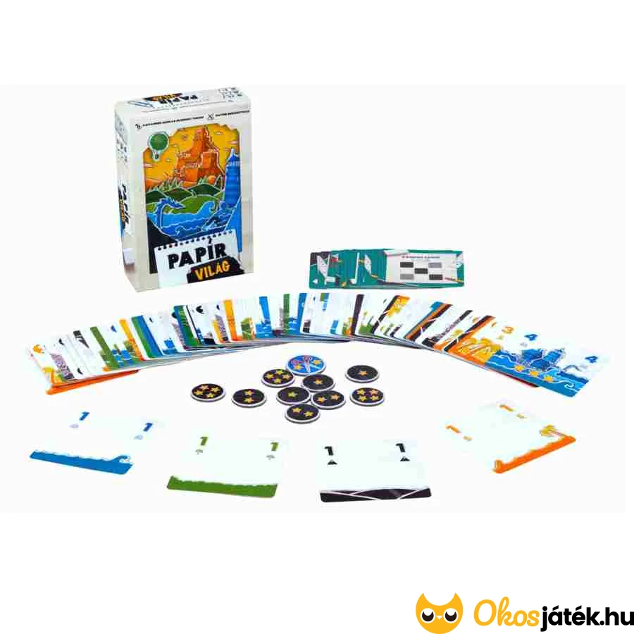 A Papírvilág társasjáték sajátos hangulatot teremt, miközben a játékosok papírrétegekből állítják össze személyes tájukat. A színekben vagy számokban harmonizáló kártyák egymás mellé és fölé kerülnek, és a növekvő számsorrend adja a pontgyűjtés alapját. A magasabb tornyok nagyobb értéket képviselnek, így a rétegezés komoly jelentőséggel bír.