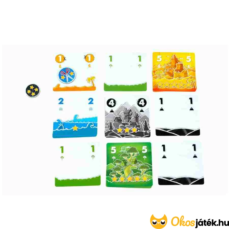 Az egyedi tájkép egy mindössze 3×3-as rácsban formálódik meg, ahol a lapok rétegei fokozatosan válnak egyre értékesebbé.