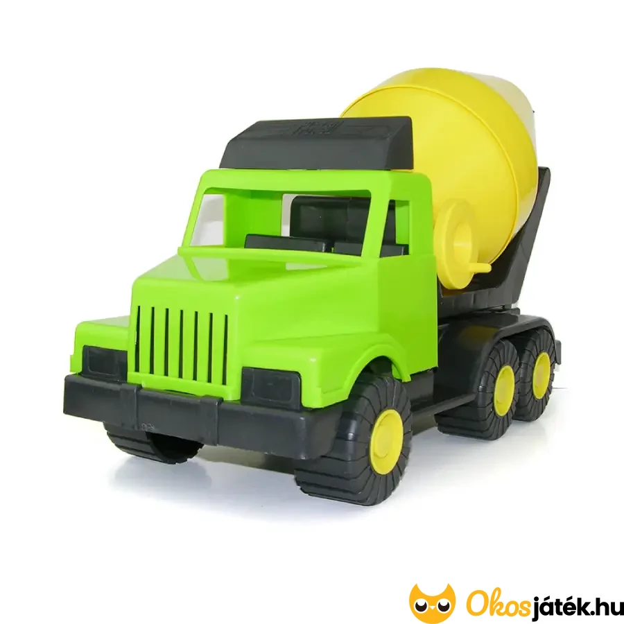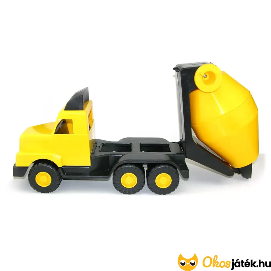 Az oldalán található tekerőkar segítségével a gyerekek maguk forgathatják a keverődobot, pont mint az igazi munkagépeken.
