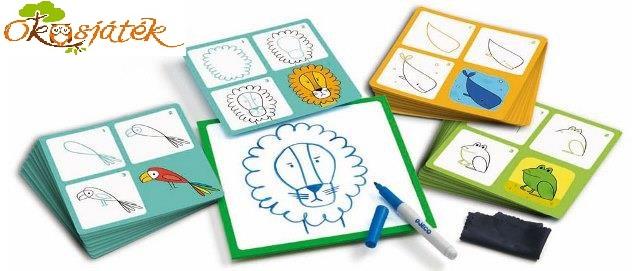 Tanulj meg rajzolni játékosan. Önállóan, vagy a szülő segítségével is játszható kreatív, rajzolást fejlesztő játék.