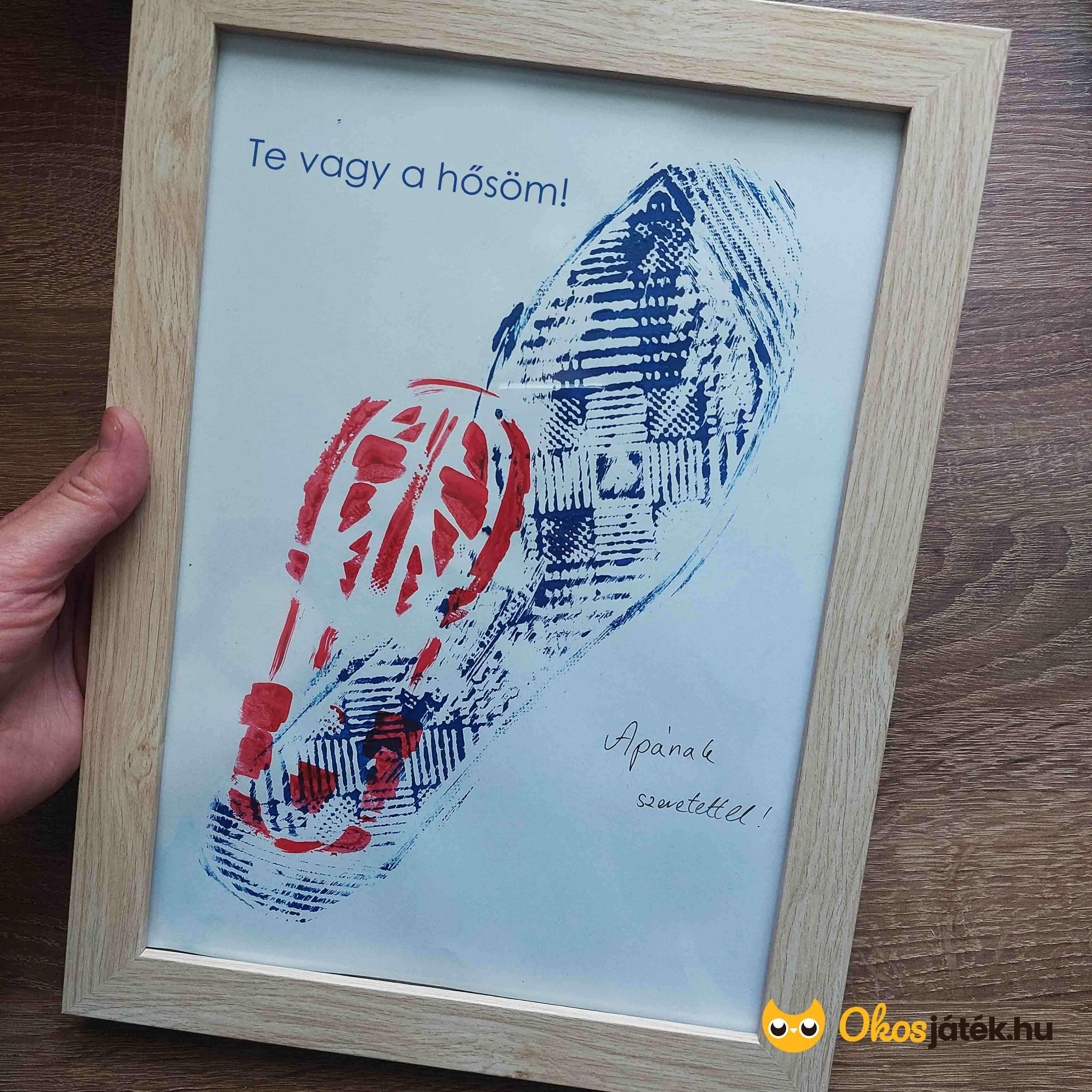 Kisebb gyerekekkel lehet látványos és megható ajándékot készíteni Apák napjára, mert az ő pici talpuk és tenyerük könnyebben ráfér egy kinyújtott alapra. A lenyomat készítése után szív formájúra is vághatjuk az anyagot, vagy tehetünk rá lyukat, hogy fali kép lehessen belőle.