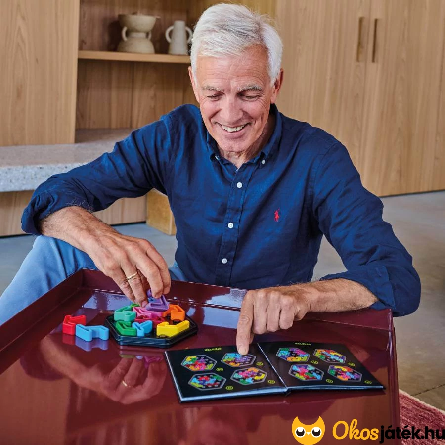 A hatszögletű játéktábla és az egyedi kialakítás izgalmas, vizuálisan is letisztult élményt kínál, miközben 120 kihíváson keresztül teszi próbára a logikai és problémamegoldó képességeket.
