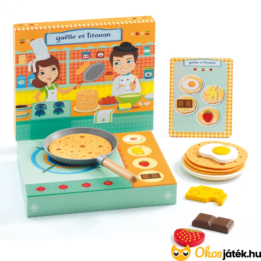 A szerepjáték során a gyerekek eljátszhatják a vendéglátás minden mozzanatát, ami fejleszti a képzelőerejüket, a szociális készségeiket és a finommotorikájukat is, miközben a feltéteket ügyesen a palacsintára helyezik.