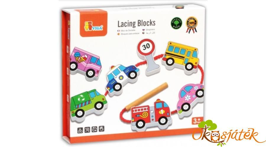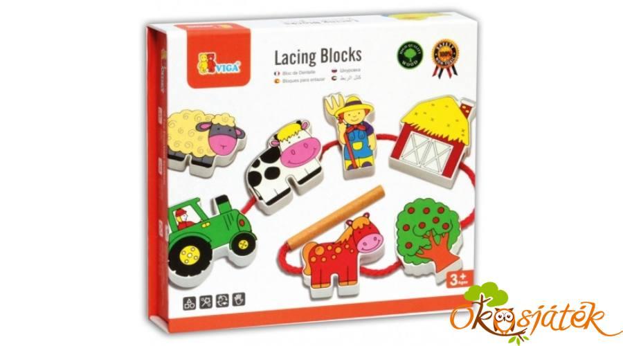 Sorolvasás- fűzze fel a gyermek a Viga állatos /járműves játék elemeit a zsinórra, majd egyenesítse ki a láncot maga előtt. Kérdezzük meg tőle például: hol kezdődik, és hol végződik a sor. Hogy mi a sor eleje – közepe - vége. A középen elhelyezkedő ló mellet balra milyen állatok vannak…stb.