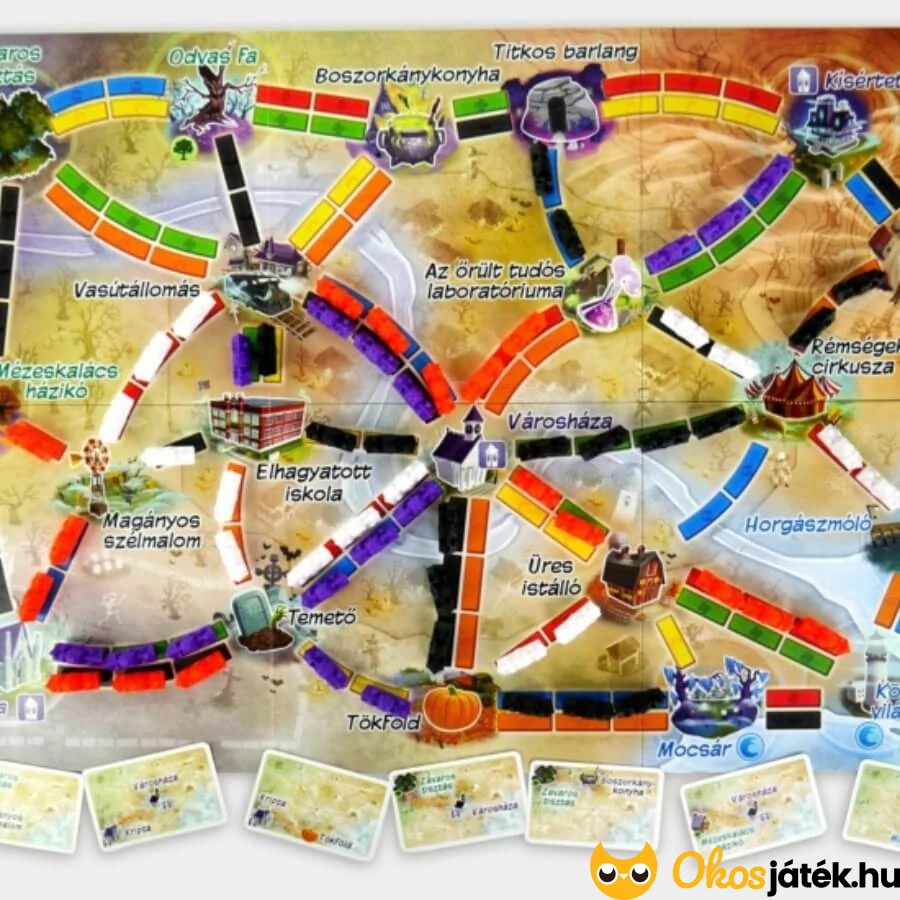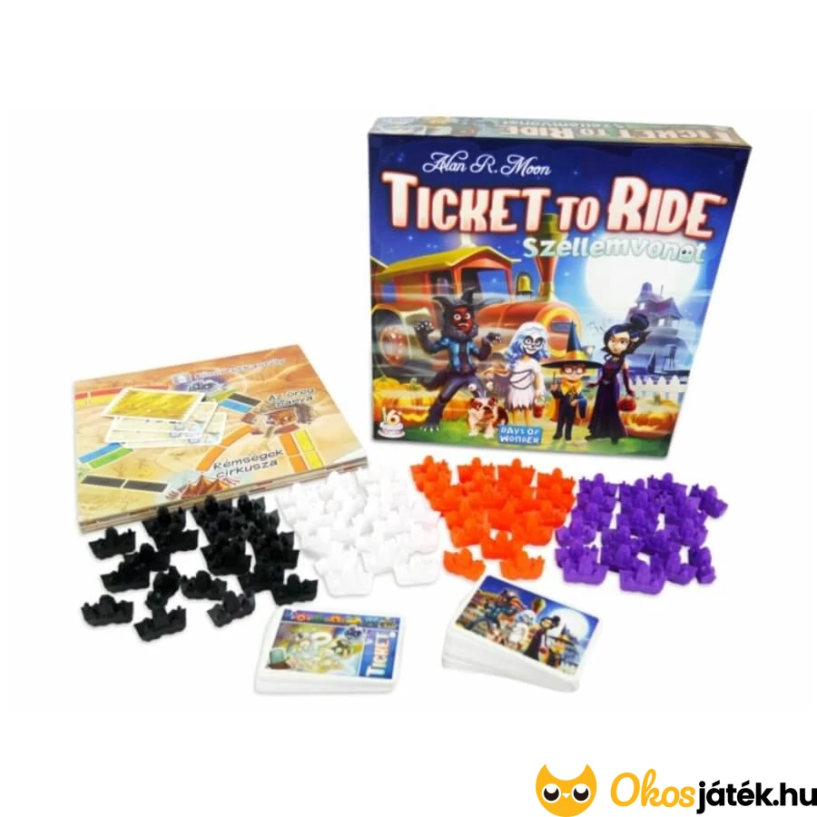 Kisebbeknek való Ticket to ride társasjáték, melyben a kis mozdonyvezetők kísértetiesen izgalmas utat járhatnak be a térképen vasútvonalak létrehozásával. A vonatos társasjátékban az nyer, aki 6 helyszínt elsőnek összeköt.